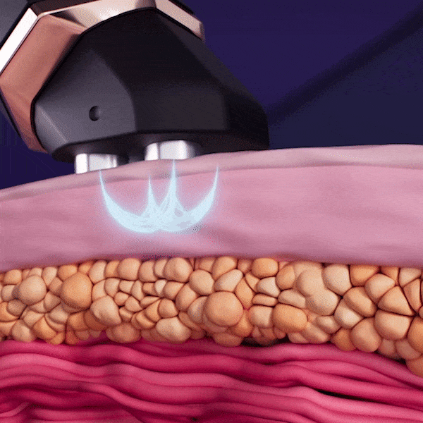A directly applied gentle electrical current works by creating intervals of stimulation in the layers of the muscle which forces light contractions of the muscles to mimic the effects of exercise, encouraging blood flow and muscle repair. This process of working a muscle through gentle contractions builds muscle tone while resting which can have a lifting and sculpting effect, improved upon when used alongside the skin tightening technology of RF.
